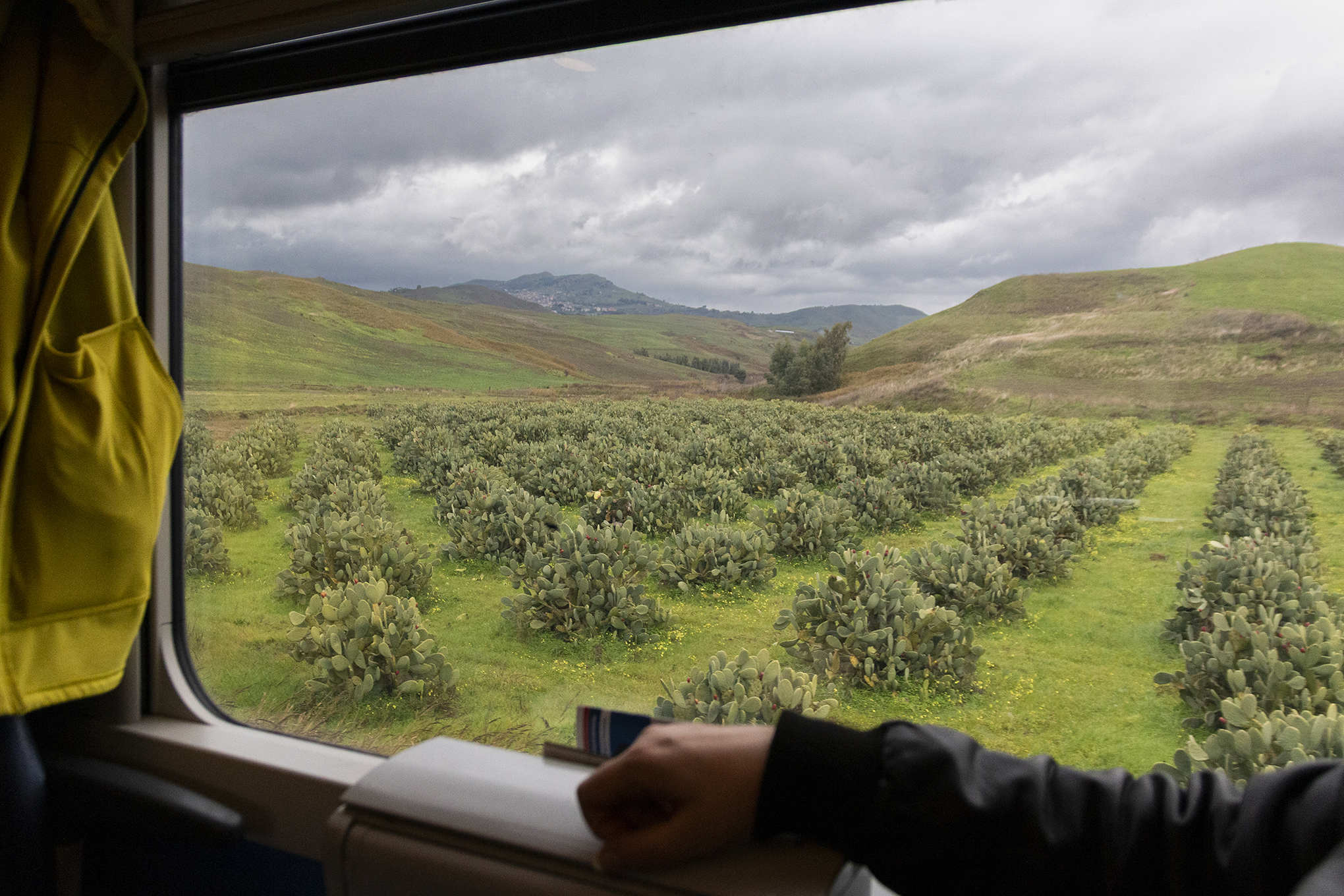 Viaggio in treno da Catania a Palermo con gli splendidi paesaggi siciliani visti dal finestrino.