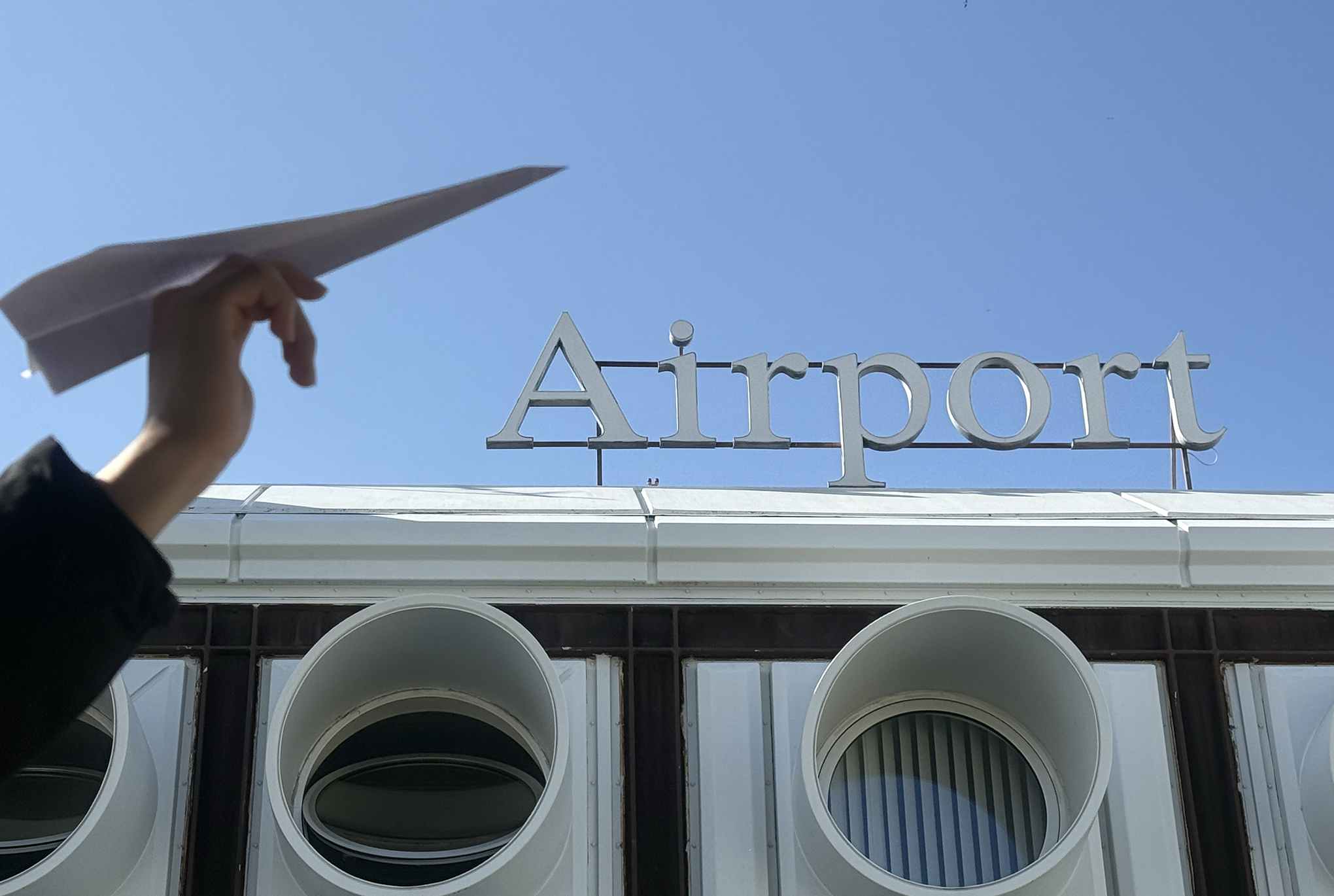 La foto rappresenta un aeroplanino di carta che sorvola la scritta "airport" e vuole indicare la felicità nell'attesa di volare e vedere la bellezza del mondo da sé.