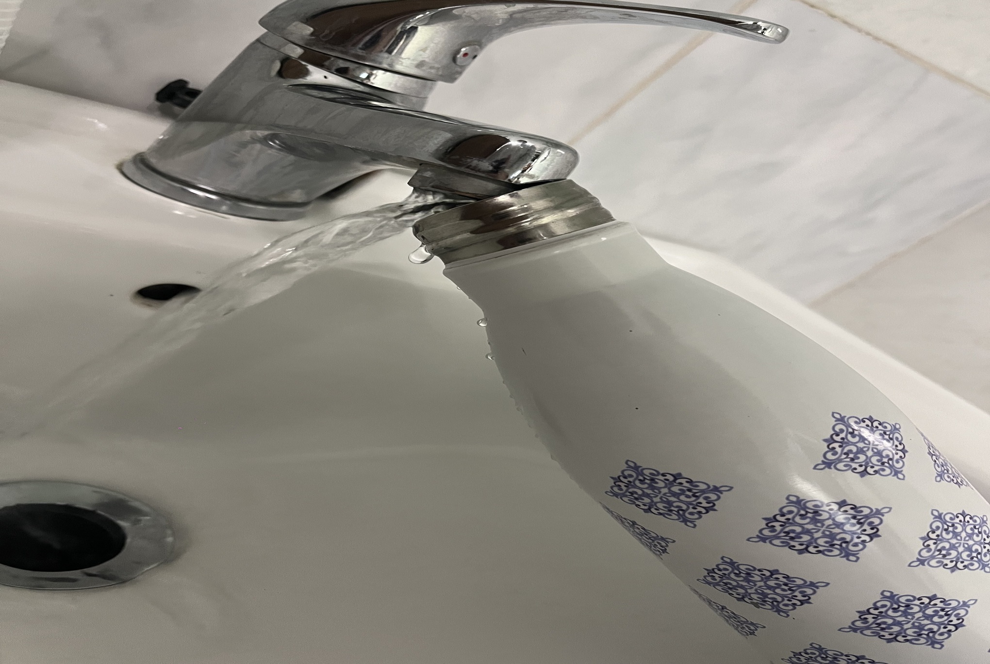 • A questa foto possono essere attribuiti più significati su diversi temi, quali lo spreco d'acqua, la lotta contro l'inquinamento da materiali plastici e l'economicità nell'utilizzo dell'acqua del rubinetto.