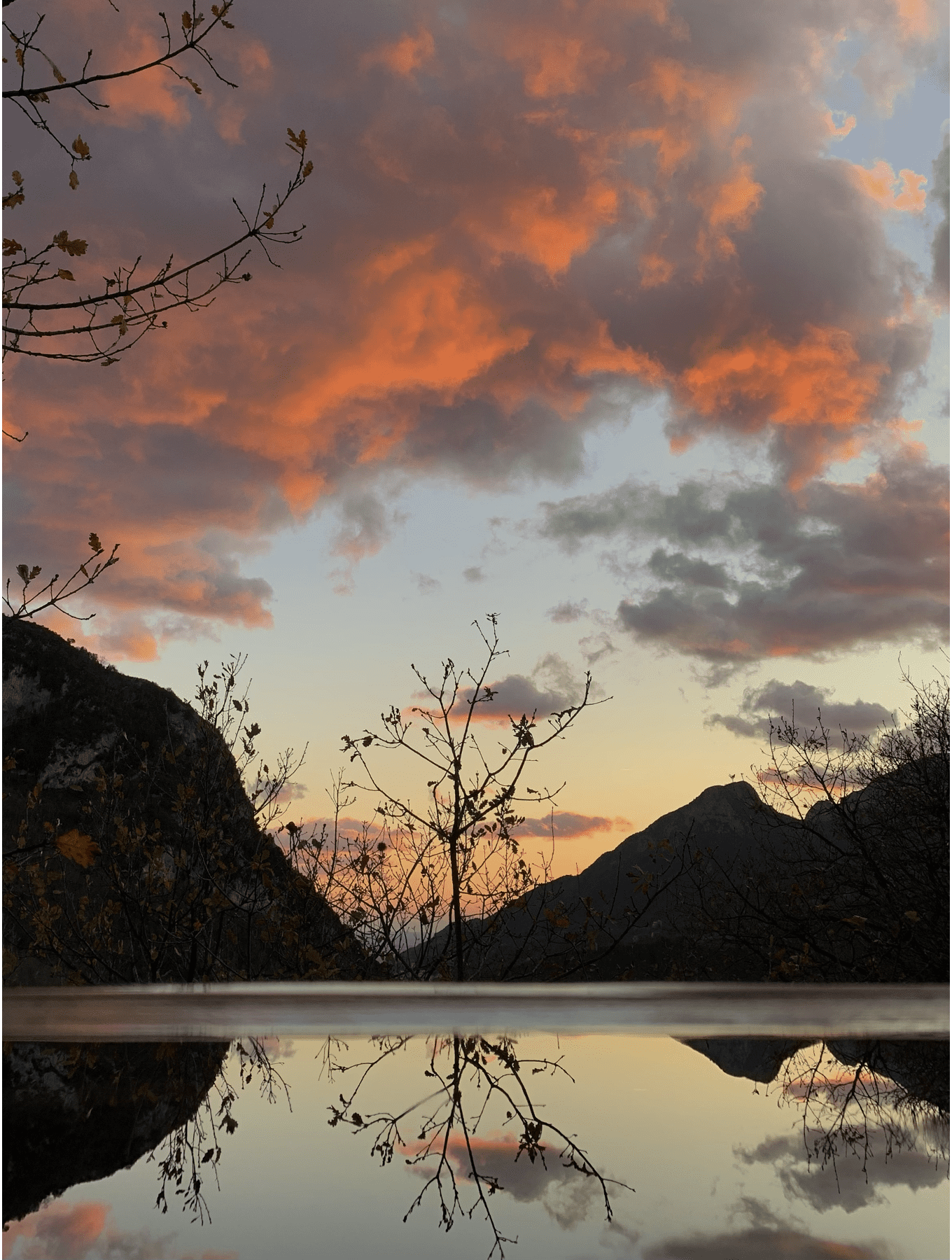 • Il messaggio che ho cercato di trasmettere tramite questa foto è quello di rappresentare fino in fondo la natura, anche nei suoi piccoli dettagli, i sogni e le emozioni che può far provare un tramonto rispecchiato nell'acqua piovana.