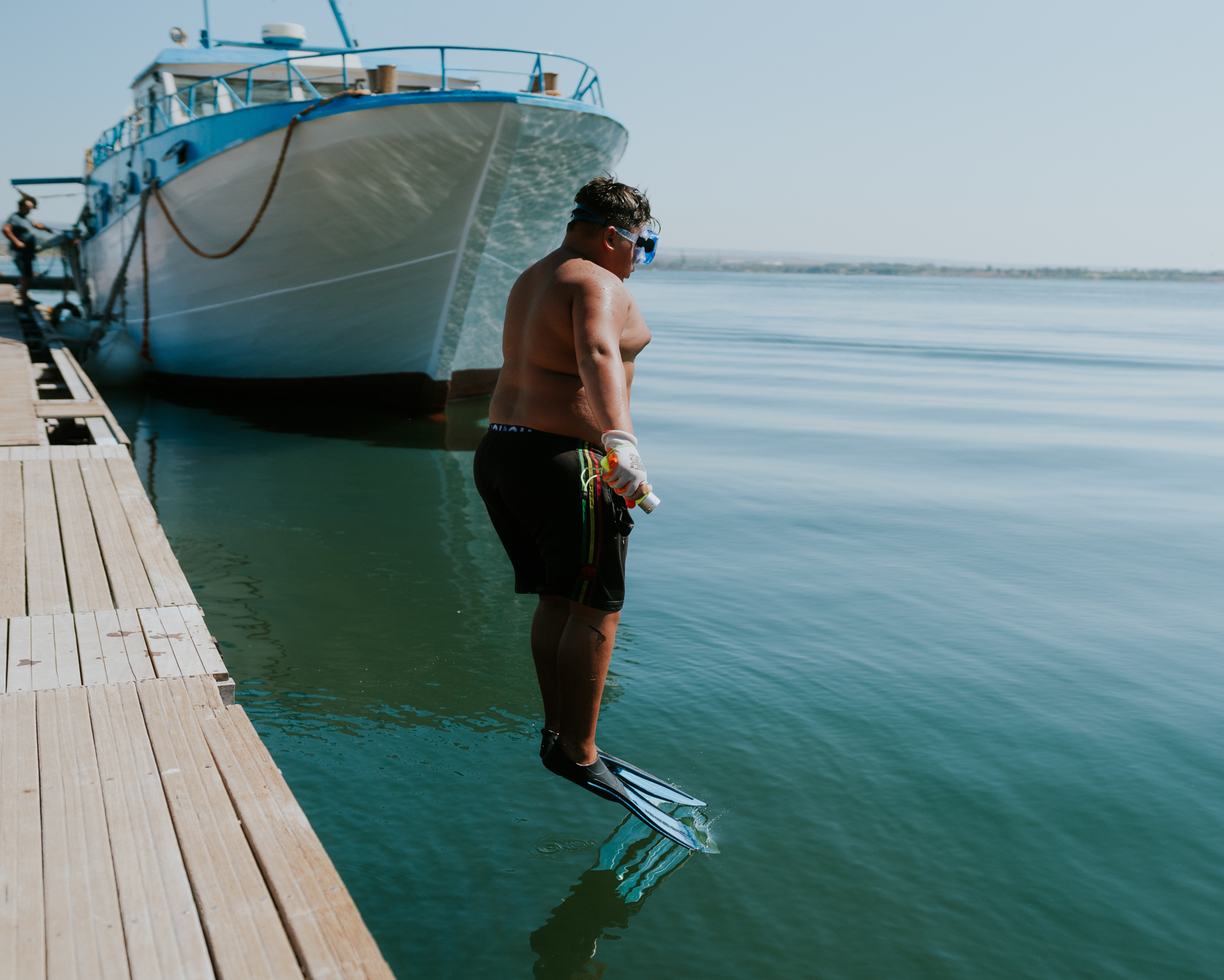 In particolare questa immagine rappresenta un ragazzo di giovane età che si tuffa in mare per raccogliere i tipici “coccioli” tarantini.