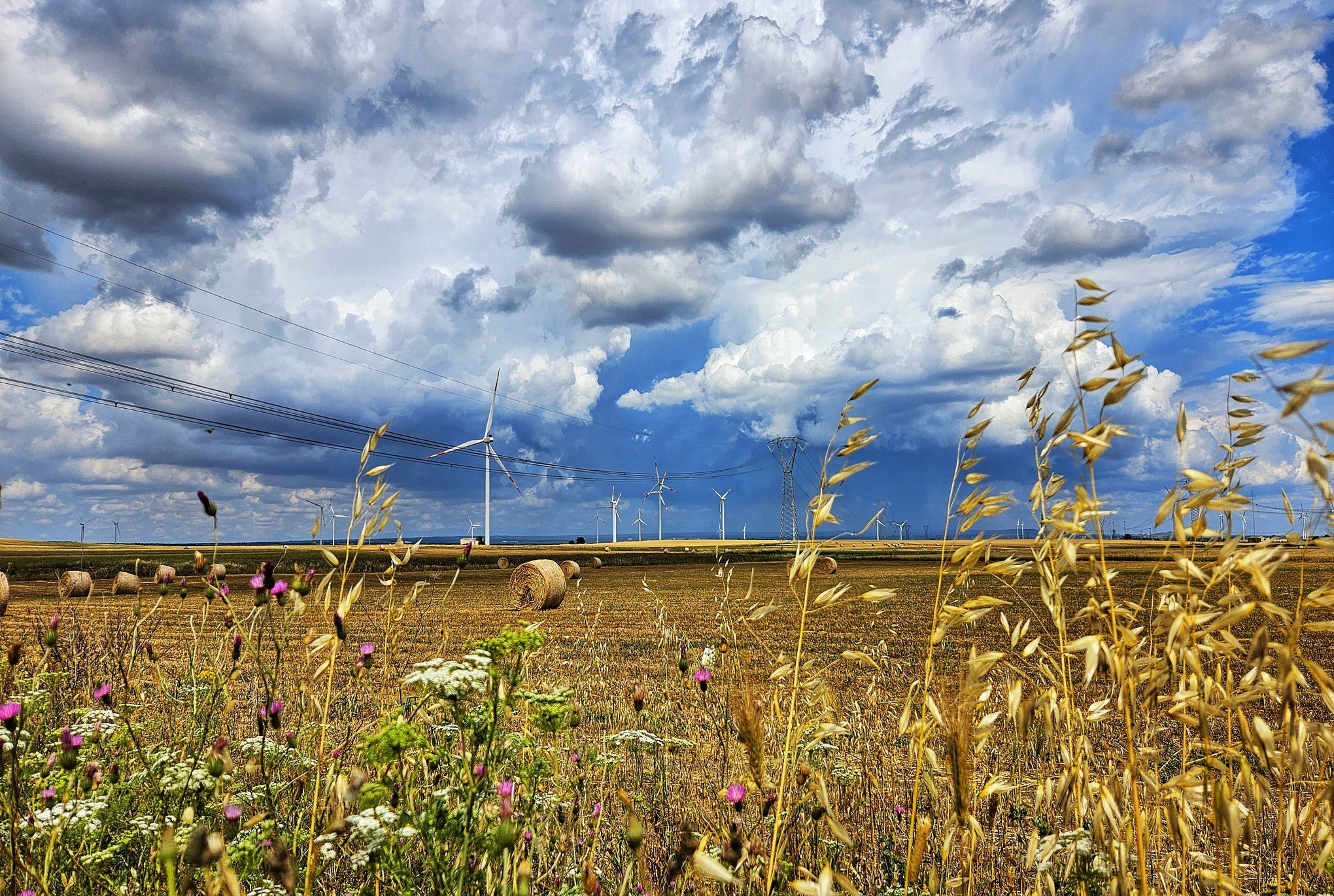 • La foto è stata scattata nelle campagne di Laterza (TA) in una zono in cui, negli ultimi tempi, è sorto un parco eolico. Lo scatto mostra come questi moderni strumenti, simbolo delle energie rinnovabili, si sono integrati perfettamente nel paesaggio e con il lavoro agricolo che caratterizza da secoli questo territorio. La foto è stata scattata in un primo pomeriggio di giugno mentre ero in giro per la campagna del mio paese, durante il periodo della raccolta del grano e con un cielo che minacciava pioggia.