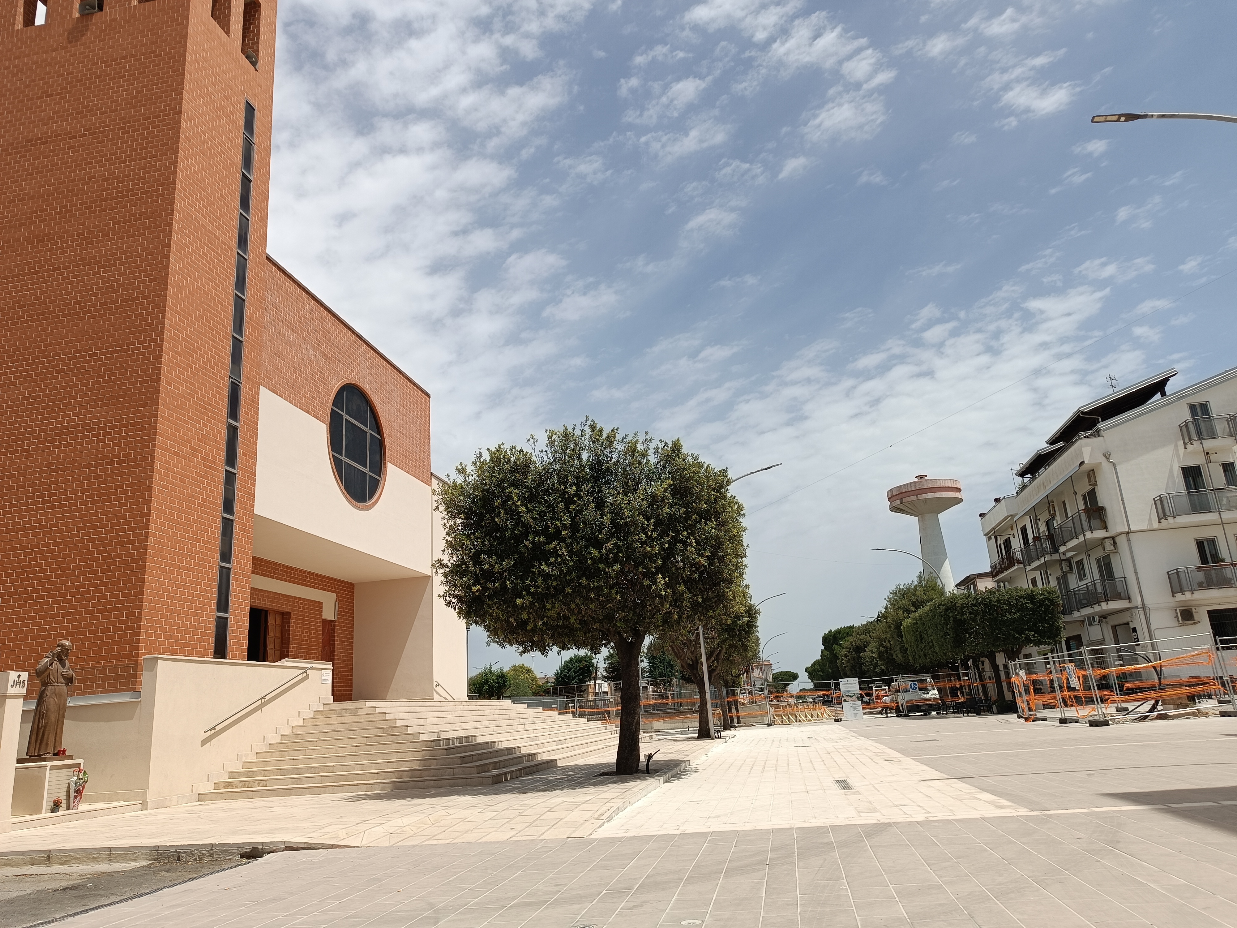 • Nella fotografia è rappresentata la piazza di un paese della provincia di Matera. Racconta le tradizioni e il futuro che sta nascendo. In Piazza Elettra si nota un'architettura di epoca fascista, simboli del regime ed edifici tipici. La torre littoria e il portico che avvolge la piazza.