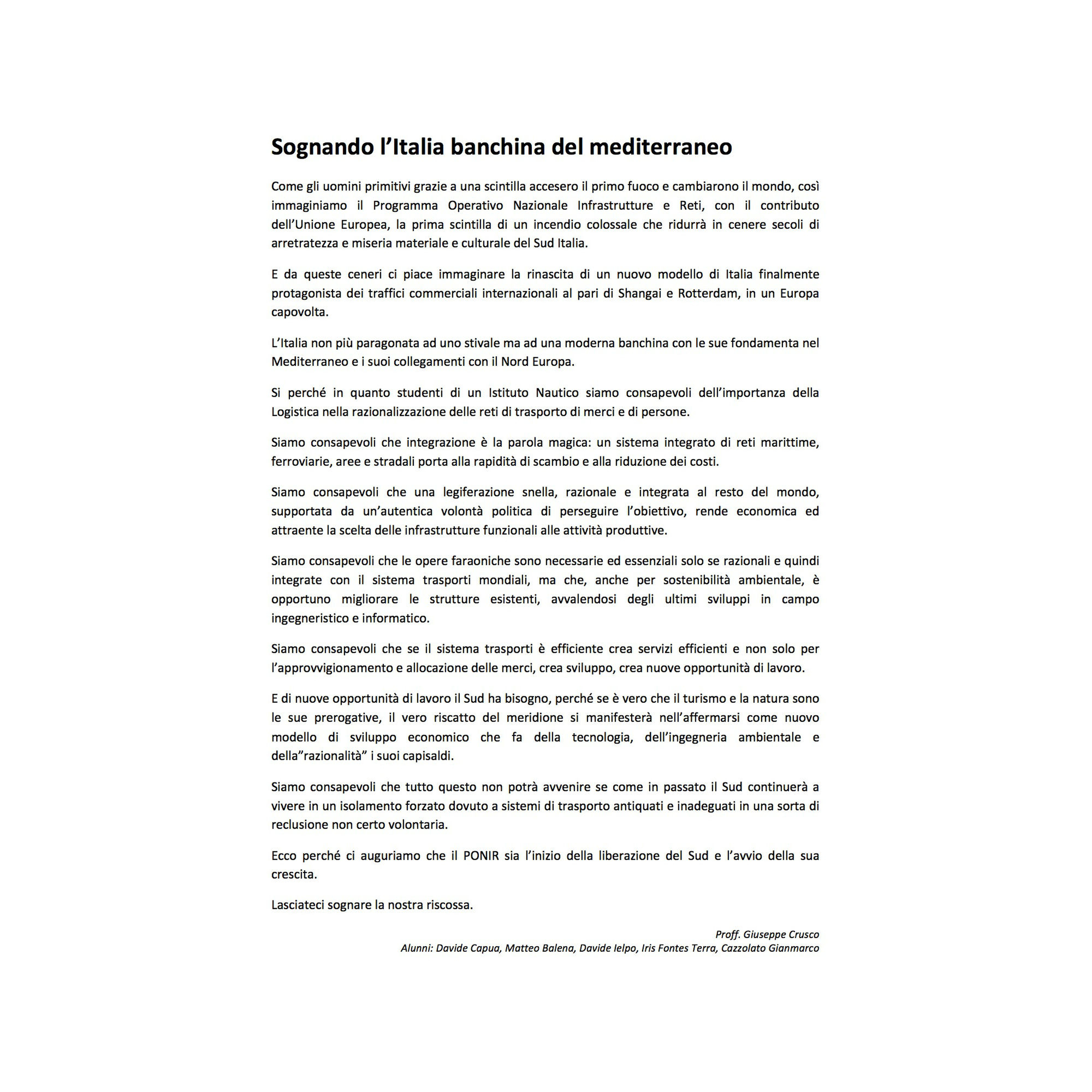 • Link per aprire la proposta: http://ponir.mit.gov.it/images/contest/pdf/Sognando_Italia_banchina_del_Mediterraneo-Maratea.pdf