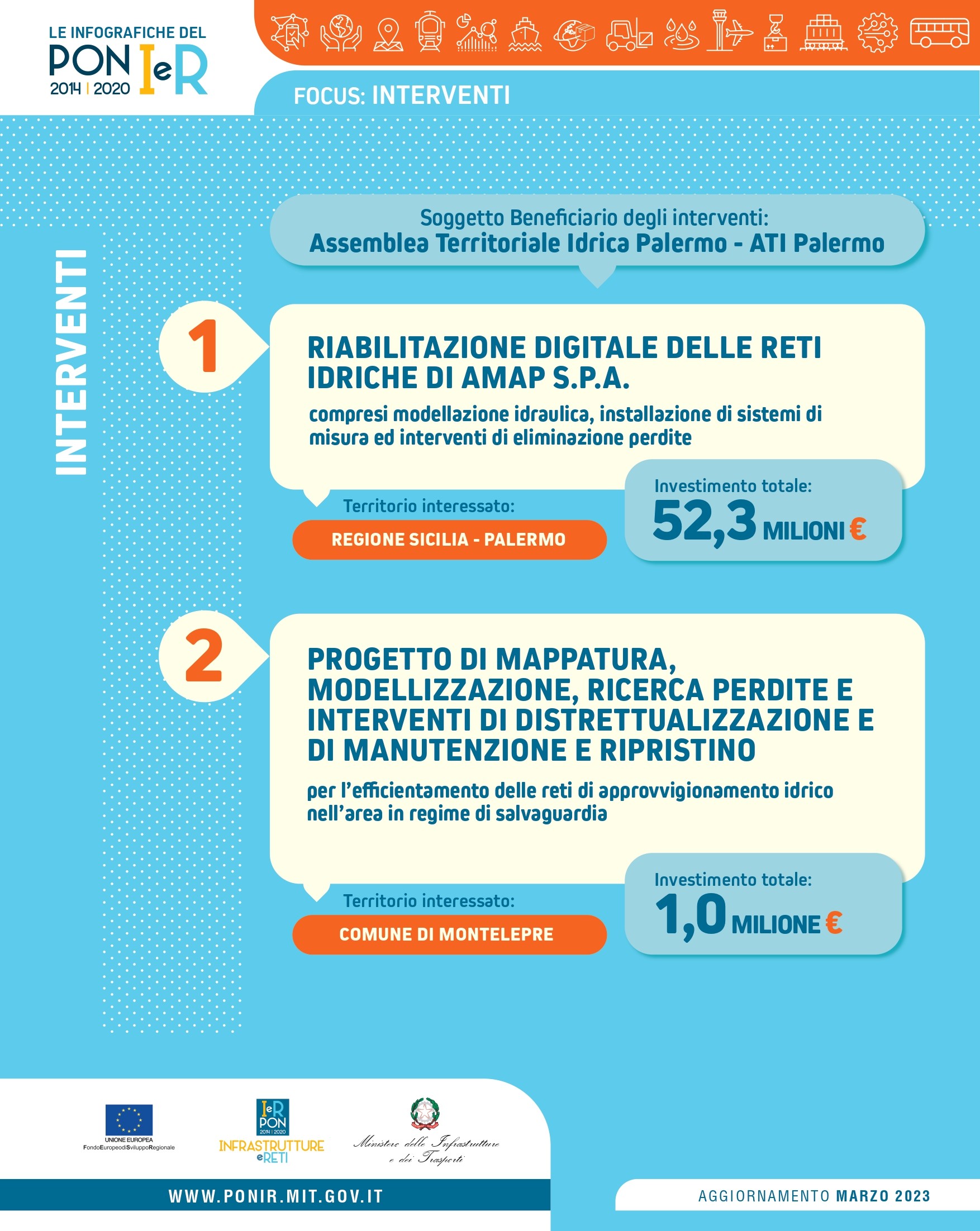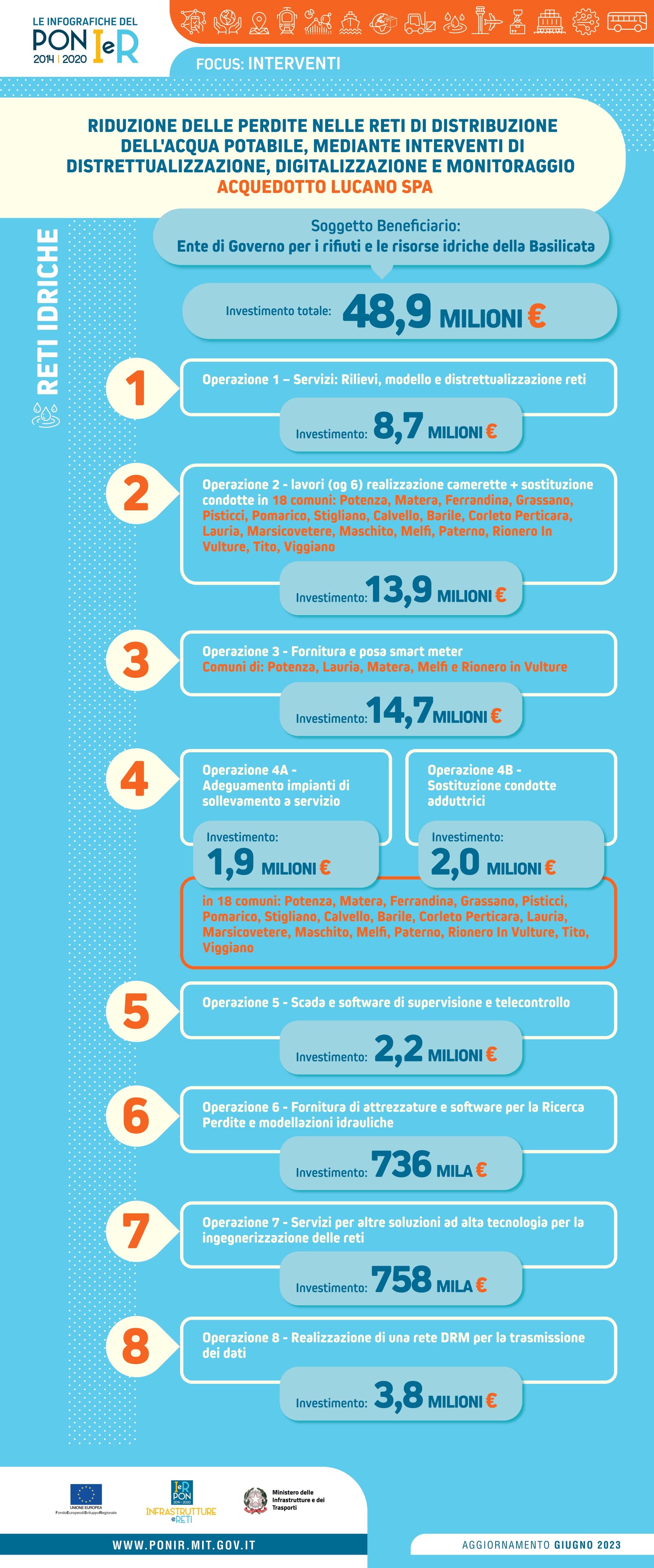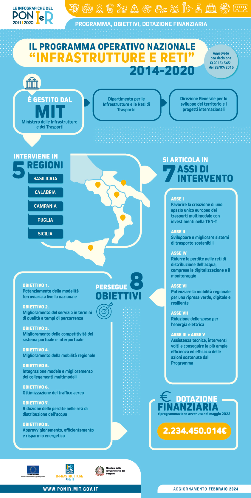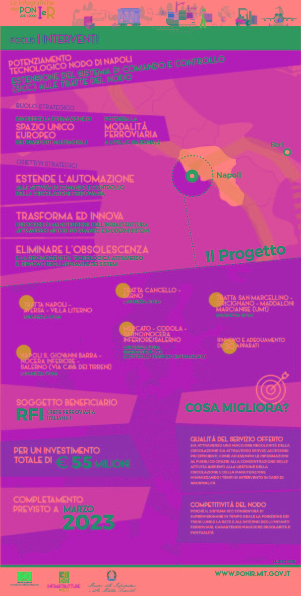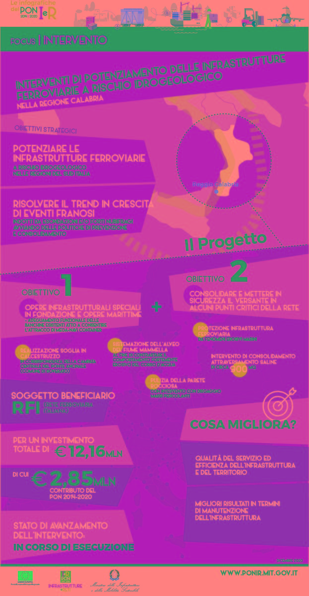 L'Infografica è una forma semplice ed efficace di rappresentare la complessità del PON Infrastrutture e Reti e le diverse modalità di intervento, descrivendo nel dettaglio gli obiettivi specifici del programma ei risultati attesi: