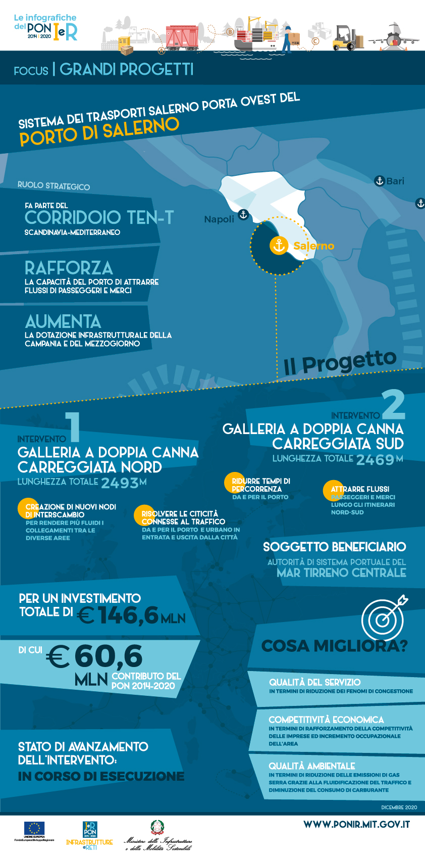 Il progetto costituisce una delle fasi di realizzazione del collegamento stradale tra l'A3 e l’infrastruttura portuale attraverso la costruzione di due gallerie a doppia canna, ciascuna a doppia corsia e senso unico di marcia.
